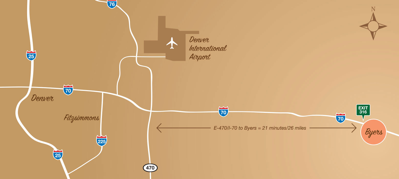 Byers provides a balance of western heritage and family-friendly traditions with easy proximity to the city. Just 21 minutes east of Highways E-470 & I-70, Byers lets you get away from it all while keeping you close enough to be in the middle of it all. The town is even closer to large employers in the east-metro area, such as Denver International Airport, The Children’s Hospital, the University of Colorado Anschutz Medical Campus and Hospital, and many major warehouses and distribution hubs.